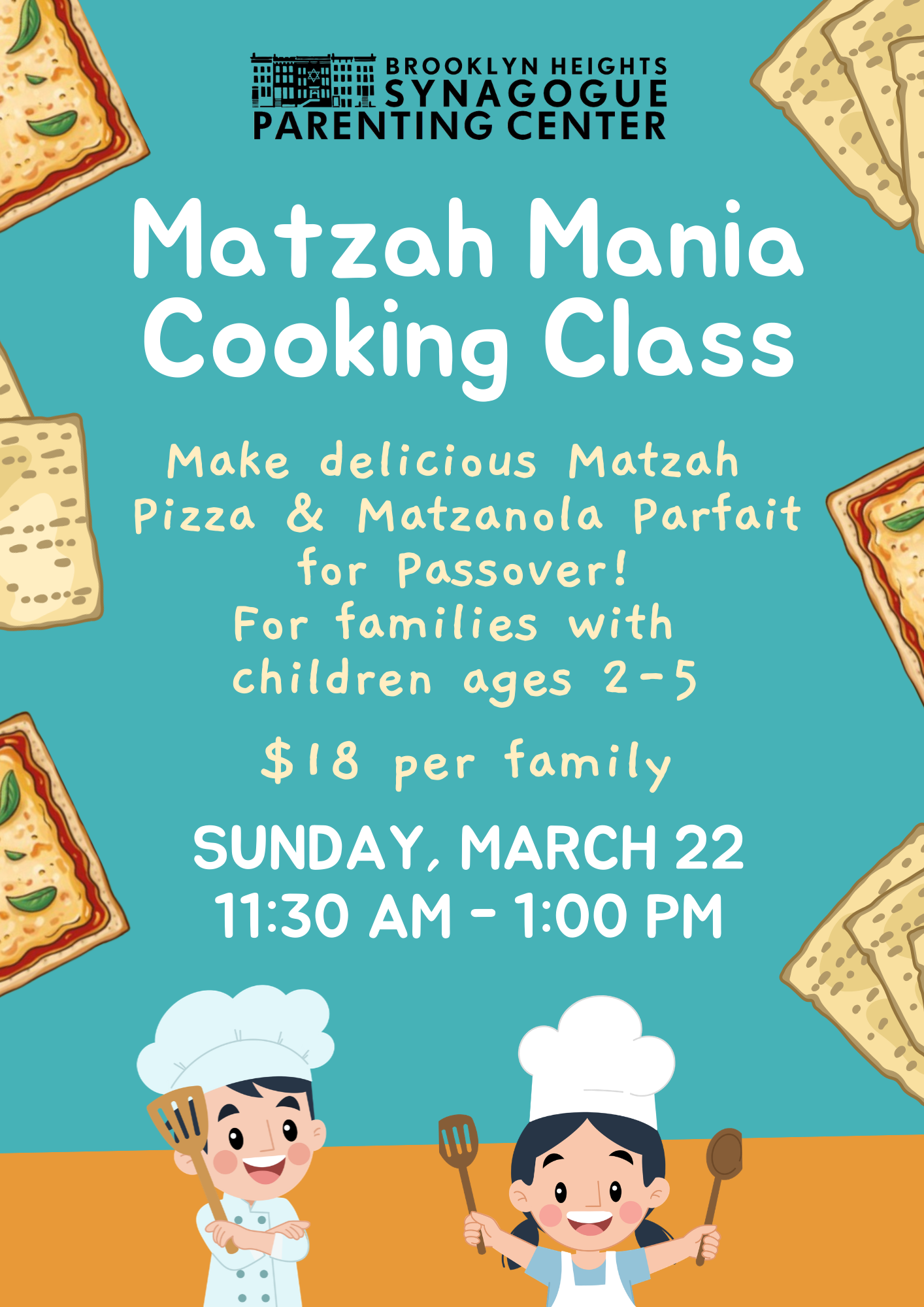 11:00am | Matzah Mania Passover Family Cooking – with the Parenting Center, for families with children ages 2-5 | RSVP here